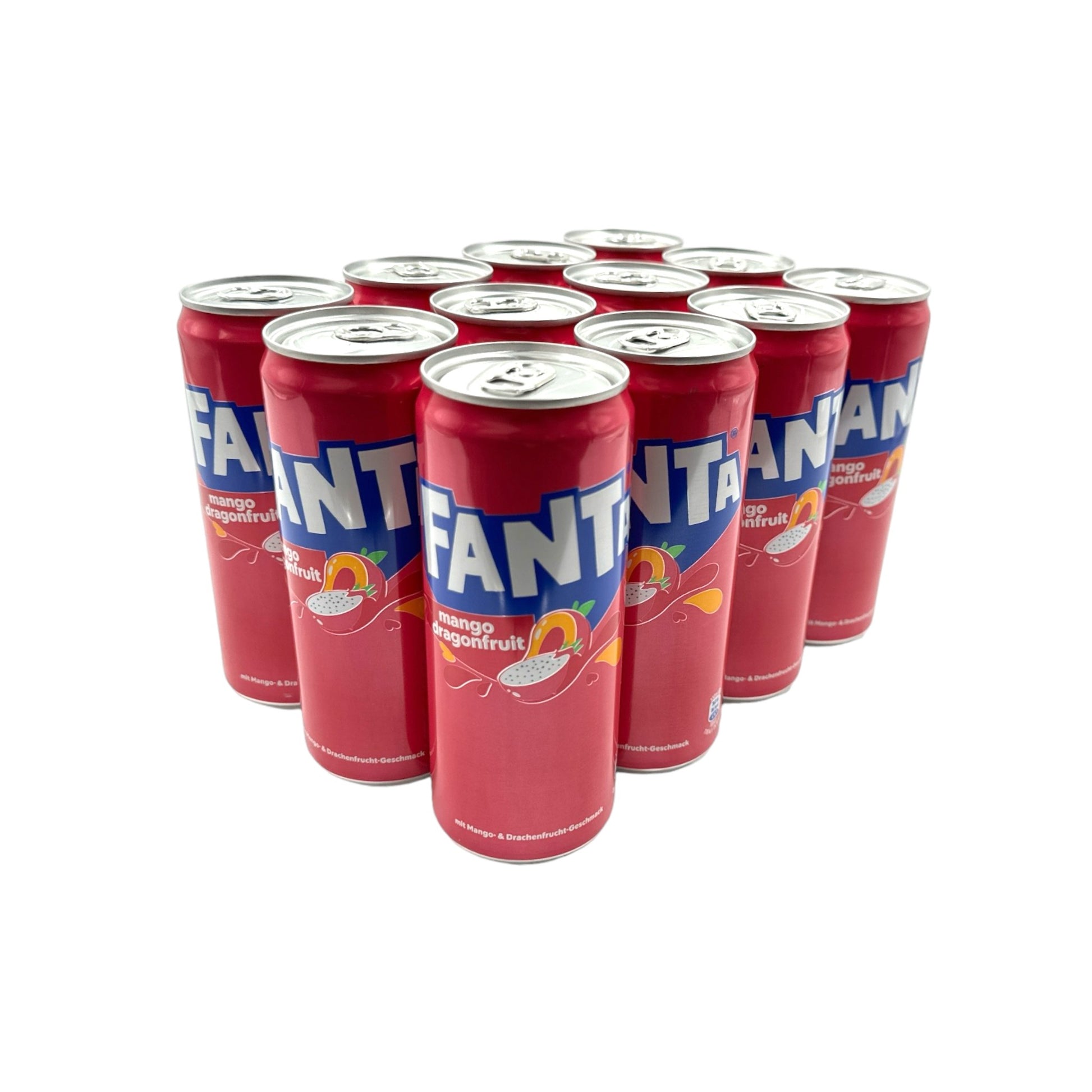 Fanta Mango Dragonfruit Dose - Exotische Erfrischung im Angebot! Tauche ein in die tropische Welt von Fanta Mango Dragonfruit! Diese aufregende Kombination aus saftiger Mango und erfrischender Drachenfrucht bringt die Sonne direkt zu dir. Perfekt für jede Gelegenheit – ob beim Entspannen oder als spritzige Begleitung bei Feiern. Inhalt: 330 ml Geschmack: Eine erfrischende Fusion aus süßer Mango und exotischer Drachenfrucht Jetzt im Angebot: Sichere dir die Fanta Mango Dragonfruit Dose zu einem attraktiven Preis und lass sie dir bequem nach Hause liefern. Keine Mühe, kein Schleppen – einfach online bestellen und genießen! Hol dir die Fanta Mango Dragonfruit im Angebot und erlebe einen tropischen Genuss, der dich sofort begeistert! Wasser, Zucker, Orangensaft aus Orangensaftkonzentrat (2,7 %), Kohlensäure, Säuerungsmittel (Citronensäure, Äpfelsäure), Antioxidationsmittel Ascorbinsäure, Mangosaft aus Mangosaftkonzentrat (0.1 %), Drachenfruchtpüree (0.1 %), Zitronensaft aus Zitronensaftkonzentrat (0.1 %), Aroma, Süßungsmittel Steviolglykoside, Stabilisatoren (E 414, E 412, E 445), Konservierungsstoff Kaliumsorbat, Farbstoff Carotin Nährwertangaben pro 100ml: Brennwert: 110 kJ / 26 kcal Fett: 0 g davon gesättigte Fettsäuren: 0 g Kohlenhydrate: 6,1 g davon Zucker: 6,1 g Eiweiß: 0 g Salz: 0 g